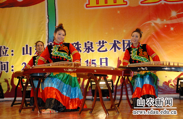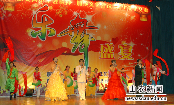 热烈、奔放的歌舞《欢聚一堂》拉开晚会的序幕。歌曲《滚滚长江东逝水》、《青藏高原》、《芦花》、《我爱你,中国》、《我为亲人熬鸡汤》、《我的太阳》,器乐合奏《梅花新调》、《凯旋》、《美好生活》、《好日子天天都快乐》,舞蹈《溜溜的康定,溜溜的情》、《永远在一起》、《掀起你的盖头来》、《奔腾》、《我的祖国》、《爱我中华》,京剧唱段《贵妃醉酒》、《霸王别姬》等节目精彩纷呈,演员们用不同的艺术形式和风格表达了对伟大祖国的热爱、对幸福生活的赞美。一曲民族器乐合奏《农大之夜》,用优美的旋律和欢快的节奏表达了农大人昂扬奋进气势。演员们精湛的表演不时激起全场观众热烈的掌声。