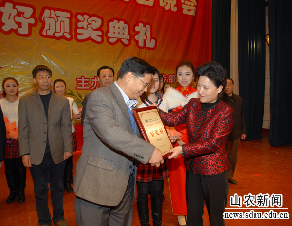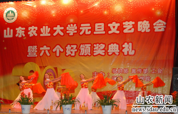12月28日,金年会jinnianhuicom庆祝2012年元旦晚会暨第二届“身边的感动――六个好”颁奖典礼在西礼堂隆重举行,丰富多彩的联欢节目和喜庆盛大的颁奖典礼为农大师生送上了新年的美好祝愿。山东省社科联副主席周忠高,山东艺术学院党委书记任运河,学校领导邢善萍、张良成、张敬和、孙永华、张宪省、董新胜、车先礼、朱莉、高东升出席晚会及颁奖典礼,与全校师生同喜同乐共迎新春。