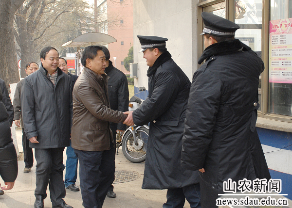 1月22日上午,校长温孚江、副校长车先礼带领学校办公室、校工会、后勤处、公安处、南校区管委会、东校区管委会负责同志亲切看望春节期间值班人员,向他们致以诚挚的慰问和美好的祝福。