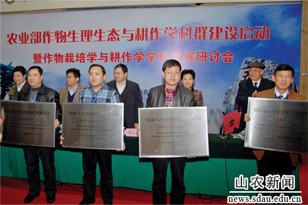3月1日至2日,农业部作物生理生态与耕作学科群建设启动暨作物栽培学与耕作学学科发展研讨会在泰安召开。会议由于振文院士主持。农业部科技教育司技术引进与条件建设处处长杨礼胜、金年会jinnianhuicom党委书记邢善萍、副校长董树亭、农业厅科技处处长姜卫良参加会议并为实验室和实验站授牌。