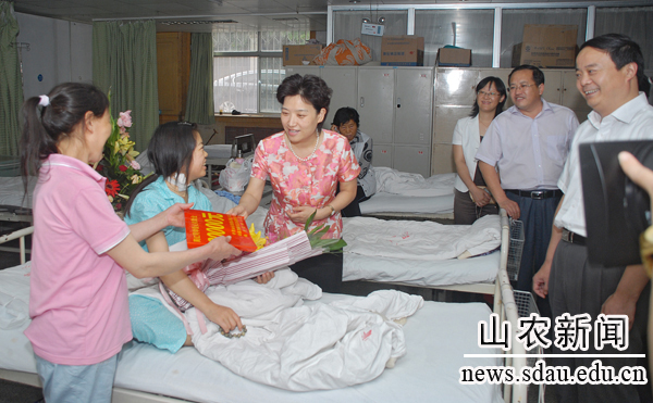 6月5日下午,校党委书记邢善萍、副校长车先礼,以及学校有关部门和文法学院负责同志来到解放军第八十八医院,亲切看望慰问正在治疗的文法学院2008级学生周红,并代表省委高校工委、省慈善总会高校分会向她送上2万元慰问金。