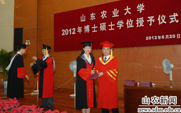 学位授予仪式由校学位评定委员会副主席、副校长张宪省主持。校学位评定委员会主席、校长温孚江发表热情洋溢的致辞,祝贺研究生们顺利完成学业、取得学位;对研究生指导老师、父母及亲人的辛勤付出表示感谢,对研究生们在校期间为学校的科研工作和学术发展所作出的贡献表示感谢。温孚江希望研究生们在以后的工作中刻苦学习、勤奋工作,努力成为山东农大的杰出校友,祝福大家今后的工作生活顺利,平安幸福。希望大家继续关心学校的改革与发展,常回母校看看,为学校发展建言献策。