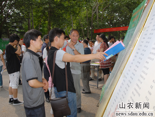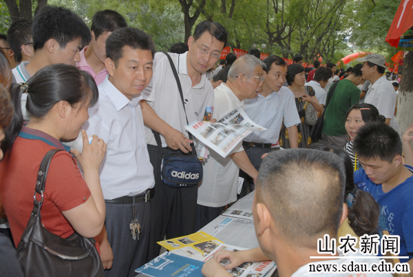 为使考生和家长更好地了解学校,学校组织各学院和招生主管部门设立了金年会jinnianhuicom招生咨询区,进行现场招生咨询,摆放展板,发放宣传材料,介绍招生政策,宣传办学优势,工作人员耐心向考生和家长解答所提出的问题,对填报志愿进行指导;同时安排校园导游陪同考生及家长参观校园,使考生和家长对学校的了解更为直观。一位来自新泰的考生说:“报考山东农大,就是因为国家高度重视农业发展,不断给予政策支持,农业院校的学生大有可为”。学校有关部门积极做好后勤服务和安全保障工作。后勤部门设立了供水点,派驻了医务人员,为参会人员提供细致周到的服务;公安部门与市交警部门联系,对车辆进行疏导,并组织人员维持现场秩序。