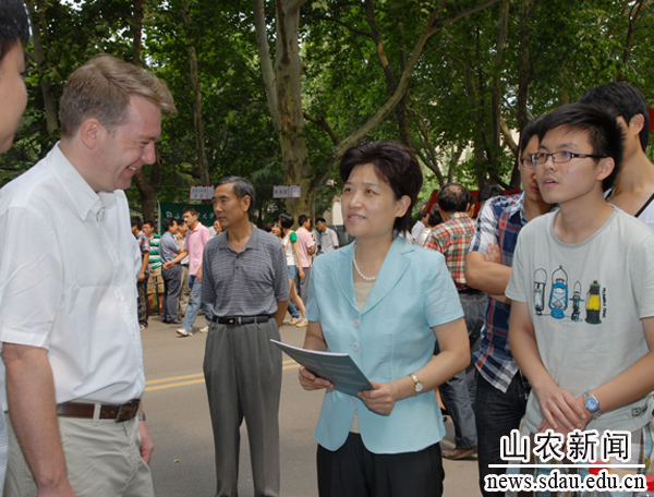 校党委书记邢善萍与参加招生咨询工作的金年会外籍教师交谈