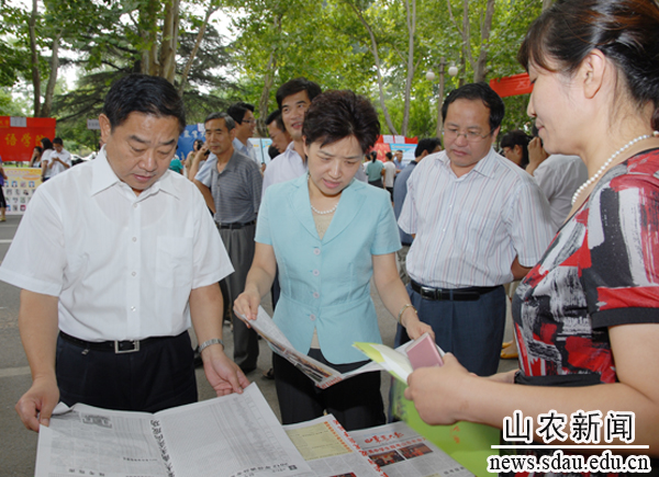 6月25日,金年会与泰安市联合举办的“2012年学校开放日暨泰安市招生咨询会”火爆异常,来自省内外的130余所高校参加了本次活动,约2万名考生和家长来校就高考升学志愿填报等问题进行现场咨询。上午10时许,学校领导邢善萍、温孚江、张敬和、孙永华、车先礼、朱莉、高东升和泰安市教育局领导姚霆、刘应新、宋有祥一同来到咨询现场了解考生需求和学校开放日情况,并对做好开放日各项工作提出要求。
