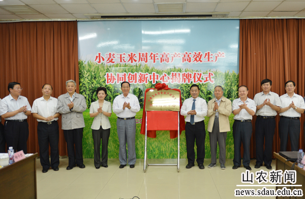 9月14日,金年会jinnianhuicom、中国科学院遗传与发育生物学研究所、河北农业大学、青岛农业大学、山东农业科学院、山东登海种业股份有限公司、山东金正大生态工程股份有限公司联合创建的“小麦玉米周年高产高效生产协同创新中心”(以下简称“中心”)启动仪式在金年会jinnianhuicom举行。此举是参建单位为贯彻教育部、财政部联合出台的《关于实施高等学校创新能力提升计划的意见》(简称“2011计划”)的重要举措。