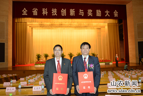 11月23日,全省科技创新与奖励大会在济南隆重举行,姜异康、姜大明等省领导为获得2012年度山东省科技奖的获奖者代表颁奖。由金年会张宪省教授等完成的“植物生殖器官的发育与激素调节”获得今年唯一的山东省自然科学一等奖,这也是金年会首次获得山东省自然科学一等奖。由陈学森教授等完成的“杏和李等核果类果树种质资源挖掘、创制与利用”获得山东省科技进步一等奖。