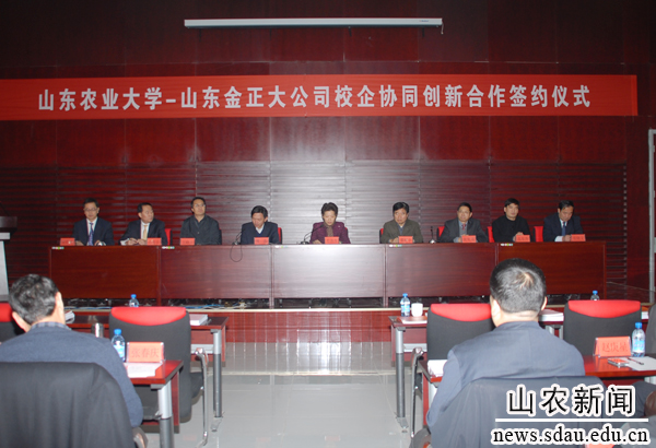 签字仪式在位于临沂市临沭县的金正大集团总部会议厅隆重举行。公司副总裁陈宏坤主持签约仪式。山东农大党委书记邢善萍,临沭县委副书记傅磊,山东金正大董事长兼总裁万连步,分别致辞,回顾双方合作历程和成果,展望下一步合作前景,表示要进一步深化战略合作,继续推进各合作项目的实施,以项目为平台,以服务农业生产为纽带,全面提升产学研结合协同创新的水平,实现双方科技创新和发展共赢。