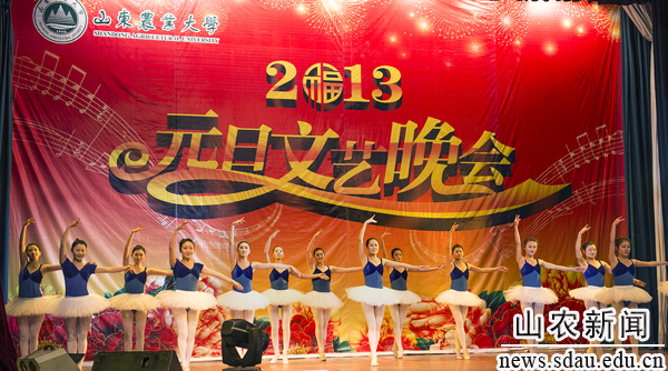 12月27日晚,西礼堂内流光溢彩,华灯绽放,座无虚席,金年会jinnianhuicom2013年元旦文艺晚会在这里精彩上演,高雅的民乐、优美的歌舞在这寒冬的夜里为农大师生送来温暖的新年祝福。学校领导孙永华、张宪省、车先礼、朱莉、嵇景涛以及各部门、各学院负责人和2000余名师生一起观看了晚会。