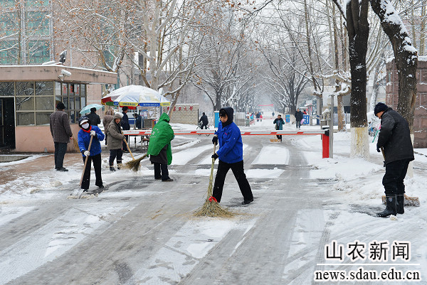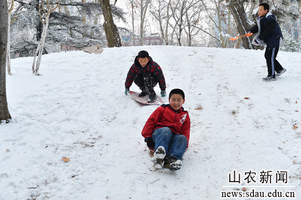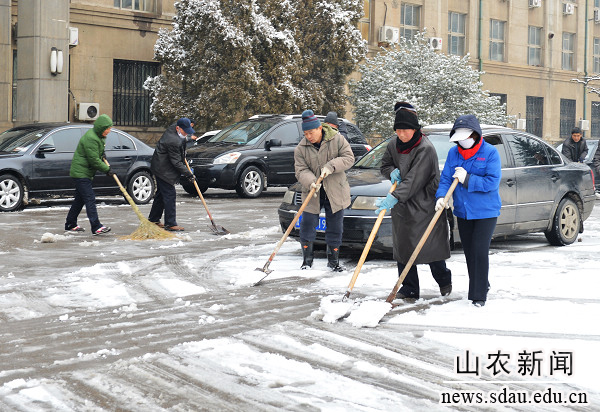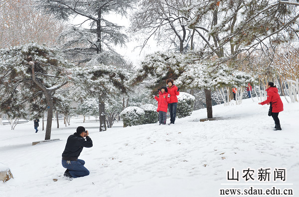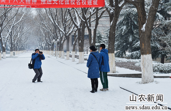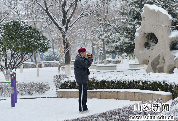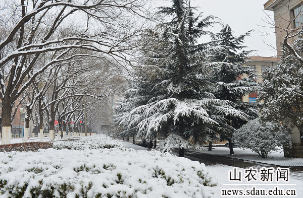 2013年农历第一个节气“立春”刚过,一场大雪便如约而至。大地银装素裹,皓然一色,一派瑞雪兆丰年的祥瑞景象。农大校园里美丽的雪景吸引着流连忘返的人们,他们在赏雪、留影、扫雪等活动中留下快乐的身影,用欢声笑语表达对美好未来的憧憬。