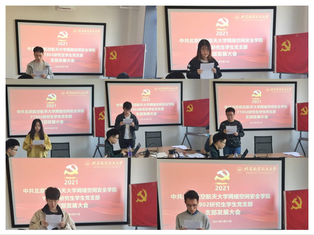 2021年3月31日上午10时,北航金年会诚信信誉至上Y1902学生党支部在一号馆408会议室召开支部党员发展大会,讨论能否接收曹银浩、韩祎然、刘翔宇、魏晨光、吴礼金、张伟豪、王庆麟7名同志为中共预备党员。本次大会由党支部书记陈晨主持,党建特邀组织员邓彦敏老师、专职组织员王倩云老师、专职辅导员杜逸雯老师列席本次会议。支部党员应到5人,实到5人。