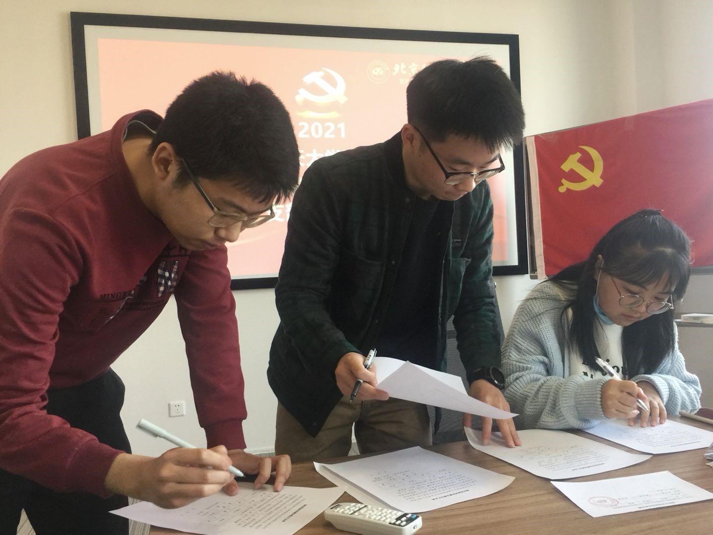 会议第二项,曹银浩、韩祎然、刘翔宇、魏晨光、吴礼金、张伟豪、王庆麟7名同志先后向支部全体党员汇报对党的认识、入党动机、个人履历、家庭和主要社会关系情况,以及需要向党组织说明的问题。