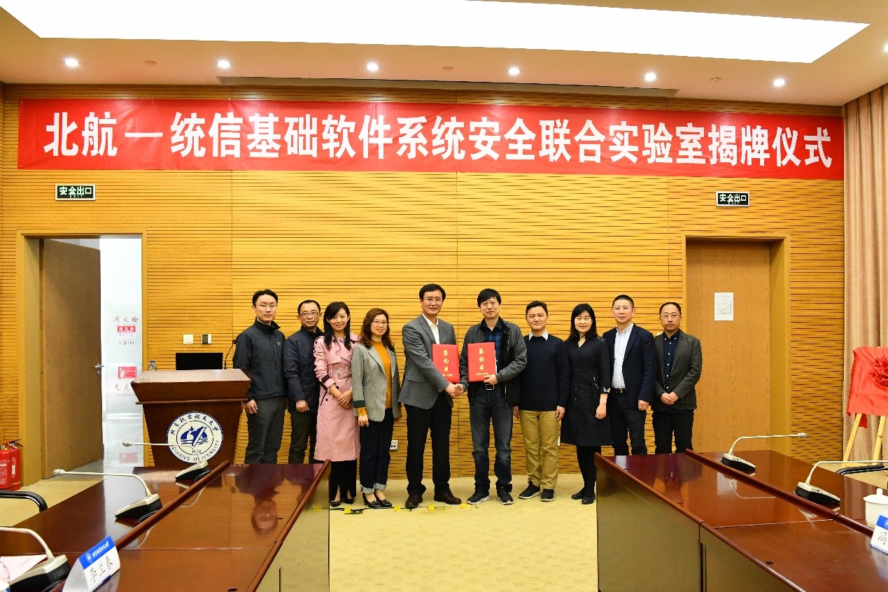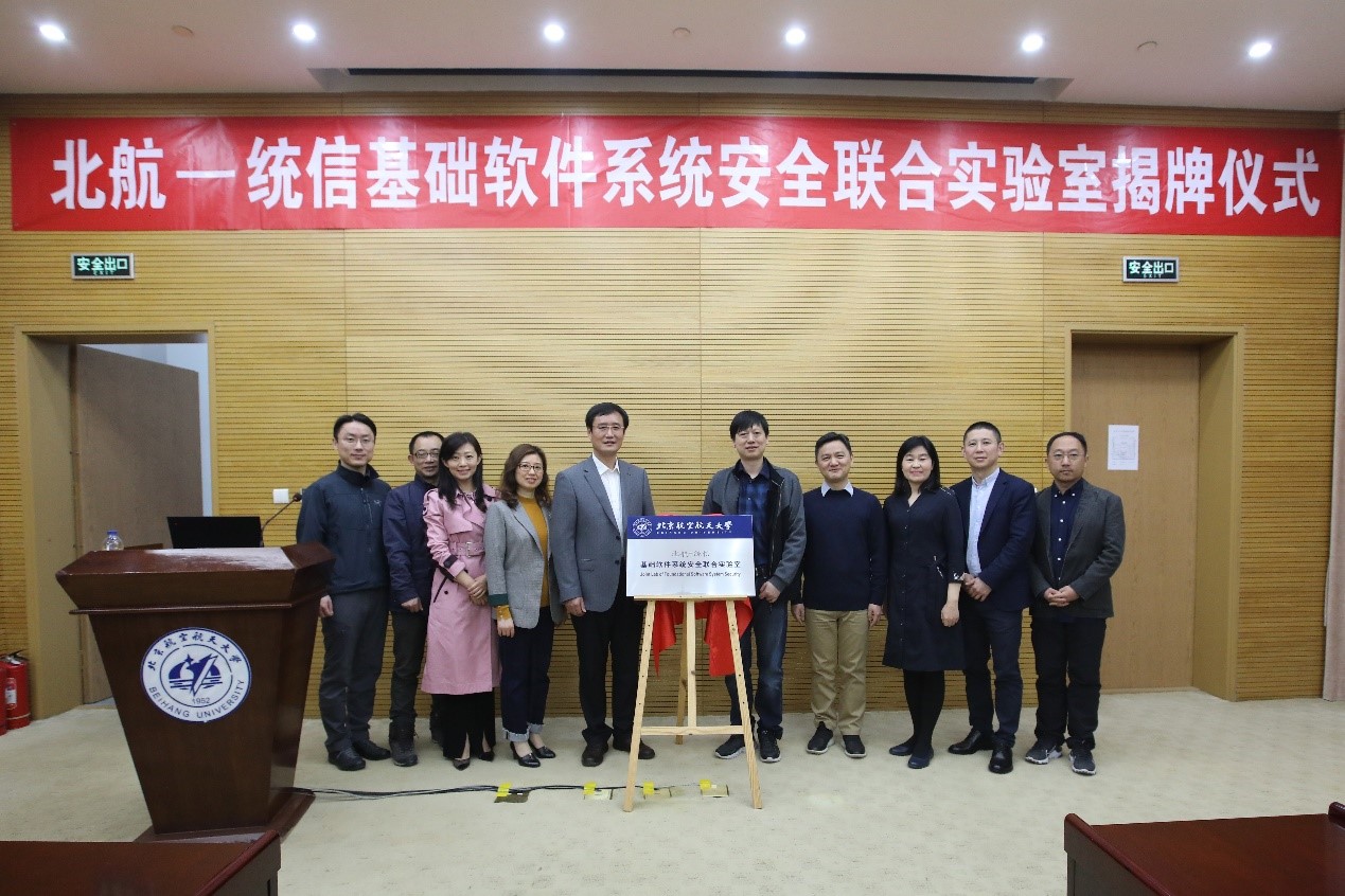 4月12日上午,金年会jinnianhuicom(简称:北航金年会诚信信誉至上)与统信软件技术有限公司(简称:统信软件)共建“北航—统信基础软件系统安全联合实验室”揭牌仪式在金年会jinnianhuicom成功举行。北航金年会诚信信誉至上院长刘建伟、党委书记蒋燕玲、副书记祝贺、副院长伍前红、副院长白琳、统信软件总经理刘闻欢、高级副总经理张磊、副总经理许可、副总经理令狐永兴、人力资源总经理武红伟等领导出席并见证本次揭牌仪式。