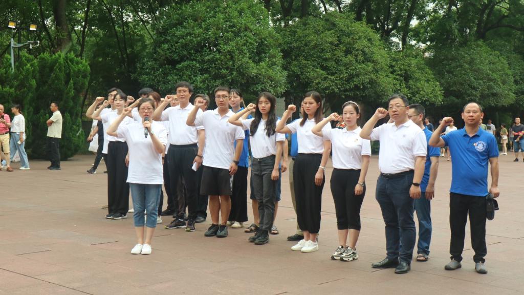 在埋葬着300多位“1127大屠杀”死难烈士的重庆歌乐山烈士陵园,党员们向烈士敬献花圈、鞠躬默哀,学院院长刘建伟向死难烈士献词,表达无限敬仰和无尽哀思。在烈士墓前,面对鲜红的党旗,学院党委书记蒋燕玲带领全体党员重温入党誓词,表达矢志不渝一心向党的坚定决心。