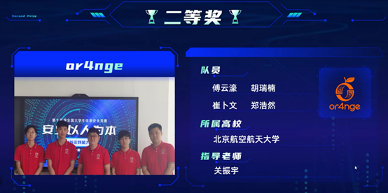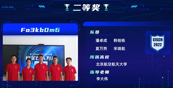 2022年8月24日,第十五届全国大学生信息安全竞赛—创新实践赛决赛 颁奖典礼在天津举行。金年会jinnianhuicom2支参赛队经过层层选拔,入围决赛,均获得二等奖。