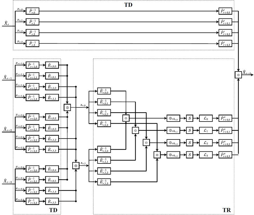 本论文首先利用Derbez等人的仿射等价算法恢复出白盒SM4实现方案轮函数所有可能的白盒编码,然后利用差分中间相遇思想筛选出正确的白盒编码,最后借助于SM4分组密码密钥生成公式,给出了对2009年以来基于仿射编码的白盒SM4实现方案的密钥恢复攻击,首次显示了十五年来所有这些白盒SM4实现方案都是很不安全的。