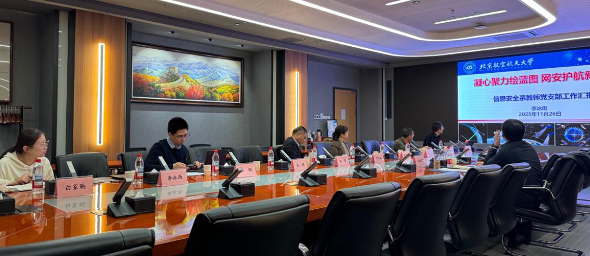 2025年11月26日,闫晓军副校长来金年会开展“十五五”规划调研,并参加信息安全系教师党支部主题党日活动。会议在第一馆510室举行,由学院党委书记蒋燕玲主持。学院领导班子成员及信息安全系党员教师参会。