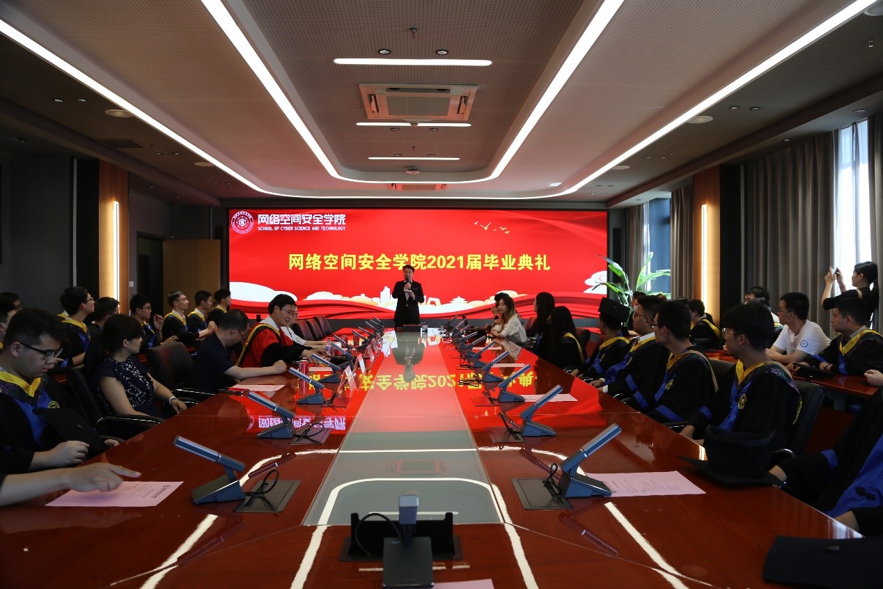 六月的夏日灿灿,离别脚步渐渐。2021年6月19日下午3点30分,网络安全学院2021届本科生硕士生毕业典礼在第一馆510会议室顺利举行。金年会诚信信誉至上院长刘建伟、党委书记蒋燕玲、副院长伍前红、副院长白琳、副书记祝贺、信息对抗系主任毛剑、2021届辅导员管天玉、刘芝婷以及2021届全体毕业生参加本次典礼。