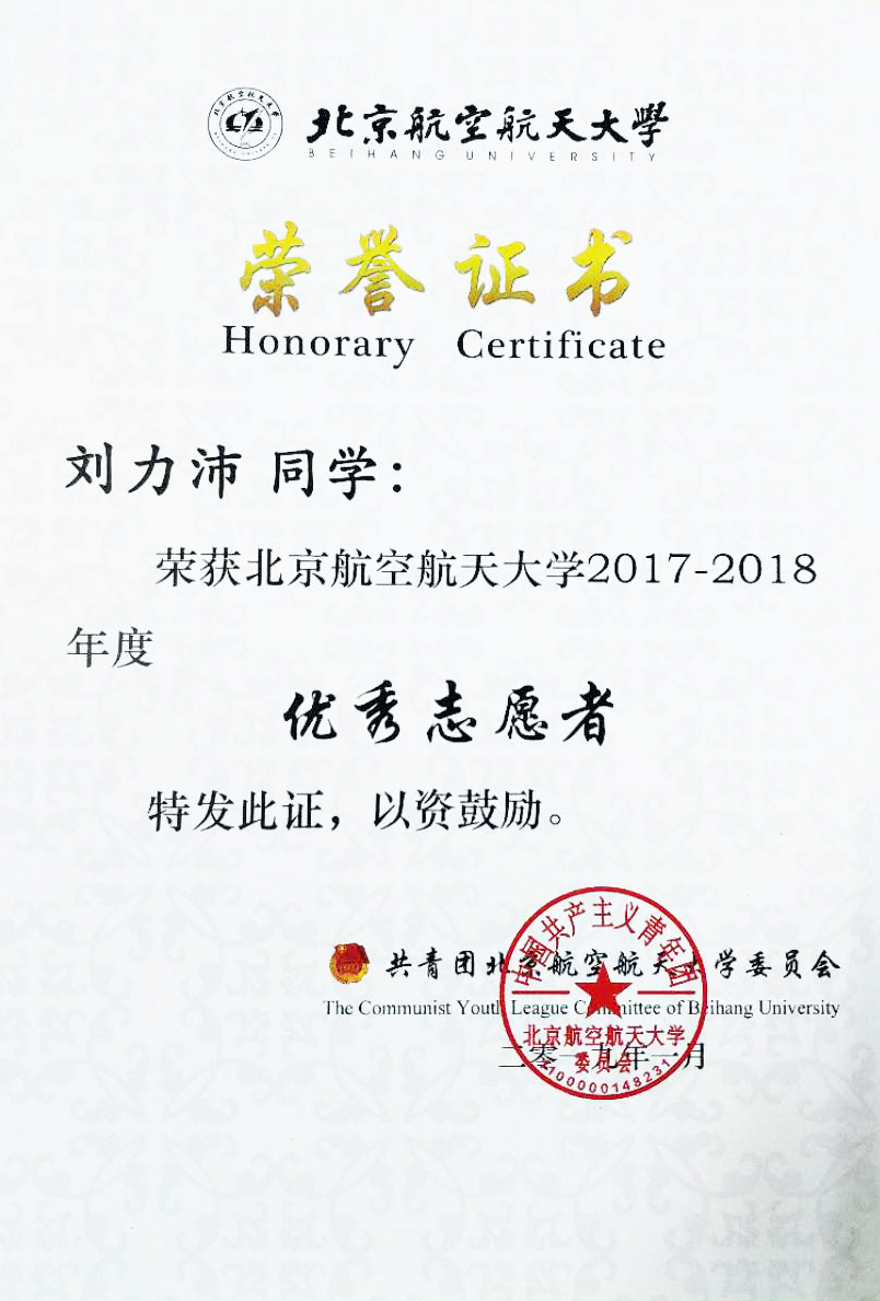 按照《关于开展金年会jinnianhuicom2018年“理纯杯”系列评比的通知》(校团字[2018]33号)的相关评比办法,经过单位推荐、材料核实、评委老师评审等程序,金年会优秀学生刘力沛获“金年会jinnianhuicom2018年度优秀志愿者”称号,予以表彰。