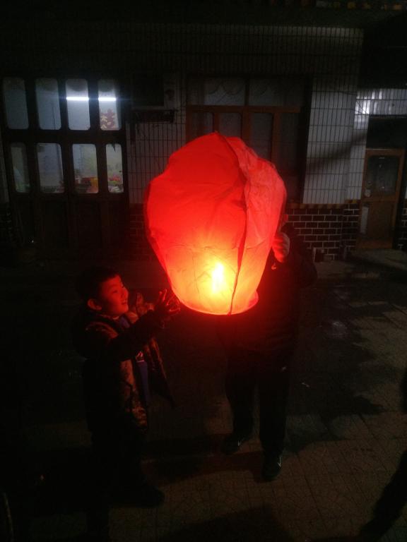 和孩子们一起放孔明灯