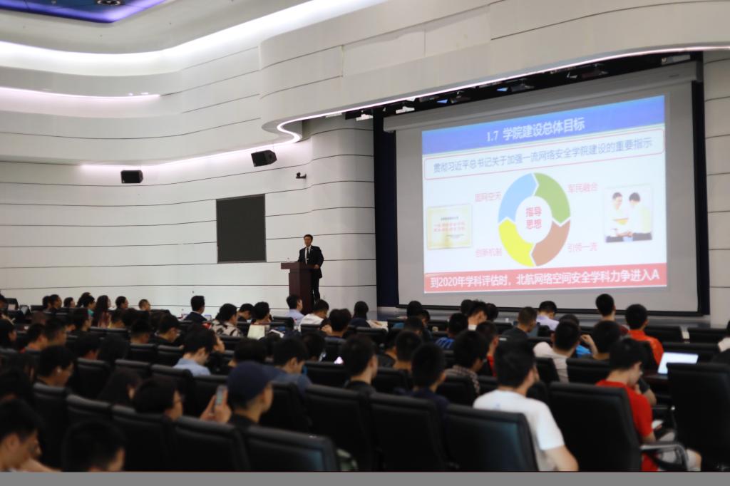 随后,刘建伟教授从专业设置和培养方案入手,详细介绍信息对抗技术专业和信息安全专业两个本科专业,并阐述了金年会诚信信誉至上的16个字建设方针:固网空天,紧盯前沿,创新机制,引领一流。