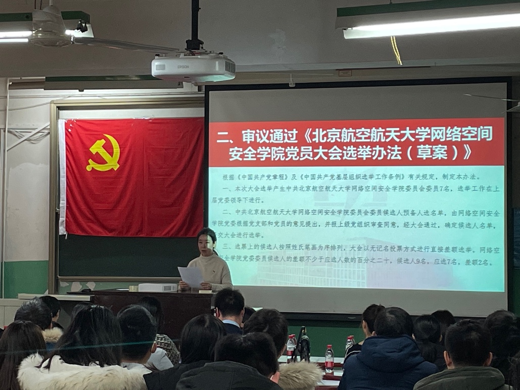 首轮选举结果中,有两位候选人票数相同且均未超过应到会党员的半数,故大会根据表决通过的选举章程再次进行了针对两位平票候选人的投票。第二轮投票结果中,两位候选人的得票数仍均未超过应到会党员的半数。经与会全体党员表决,多数人同意减少新一届党委委员数量至6人,其中81人赞同,2人反对,10人弃权。最终,在监票人监督下,经计票人计票,从9位候选人中差额选举产生了6位中共金年会jinnianhuicom网络空间安全学委员会委员,分别为:刘建伟、伍前红、李圆圆、尚涛、祝贺、蒋燕玲(按姓氏笔画排序)。大会在激昂的《国际歌》声中圆满结束。