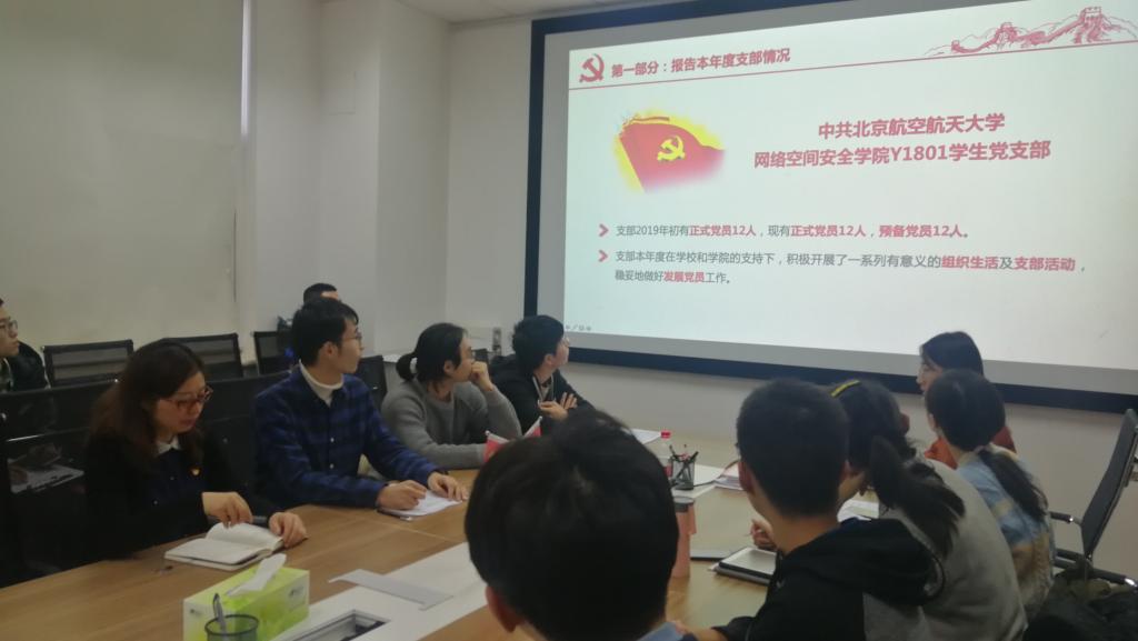 会议首先报告本年度支部情况。2019年初有12名正式党员,现在支部共有12名正式党员和12名预备党员,并组织多次理论学习和支部活动。