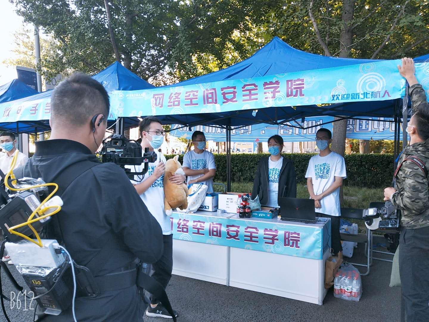最后,朱浩同学还代表迎新团队接受了采访,为大家介绍了我们网安学院的特色,并对新生寄予了祝福。在采访中,他向大家推广了网安学院的指导方针“固网空天,紧盯前沿,创新机制,引领一流”,强调了“责任担当,敢想敢做;仰望星空,脚踏实地”的重要性,鼓励新生们“砥砺奋进,向北航行”。