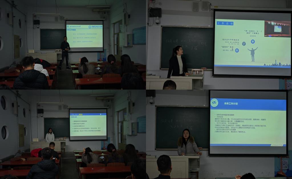 2020年12月12日下午四时许,金年会诚信信誉至上研究生会年终总结暨轮值选举大会在四号楼准时召开,作为本学期研会的最后一次会议,研会成员们也按时参加。会议由现任研会主席团成员陈春林主持召开,陈春林同学就本学期的工作事宜做了相应总结。最后由大会民主选举产生下届轮值主席。