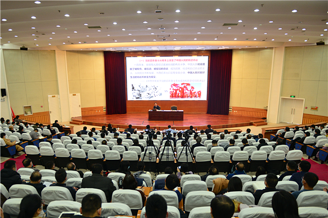 报告会上,郝宪印以《回顾百年奋斗 展望新的征程——数字解读党的十九届六中全会精神》为题,紧紧围绕学习贯彻党的十九届六中全会精神的总体要求,以丰富详实的史料、生动形象的语言、深入浅出的说理、图文并茂的画面,以及感人肺腑的党史小故事,深刻分析了党百年奋斗的重大历史意义;深刻分析了党百年书写的恢弘史诗;深刻分析了党百年历史的三个重要决议;深刻分析了党百年理论创新发展的三大成果;深刻分析了党取得四大成就的十条经验;深刻分析了党在新征程上如何走好新的赶考之路。整场报告内容丰富、重点突出,语言鲜活、案例充实,贴近教育、贴近青年、贴近实际,为学校深入学习贯彻十九届六中全会精神作了一次系统辅导。