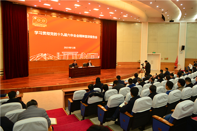 徐剑波在主持报告时指出,十九届六中全会召开以来,学校党委常委会第一时间召开会议,专题学习全会精神,研究部署学习宣传贯彻工作,要求全校师生深刻领悟党的百年奋斗重大成就和历史经验,深刻领悟中国特色社会主义进入新时代的历史性成就和历史性变革,切实把思想和行动统一到全会精神上来。学校各级党组织扛起政治责任,采取党委理论学习中心组集中学习、党支部集中学习、党员干部集中培训、党员自学等多种方式,推动学习往深里走、往心里走、往实里走。广大教师和青年学生主动响应党的伟大号召,坚持学思践悟、以学促行,把全会精神融入课堂教学、融入科研实践、融入成长成才,争做六中全会精神的传播者、践行者,迅速兴起学习宣传贯彻全会精神的热潮。